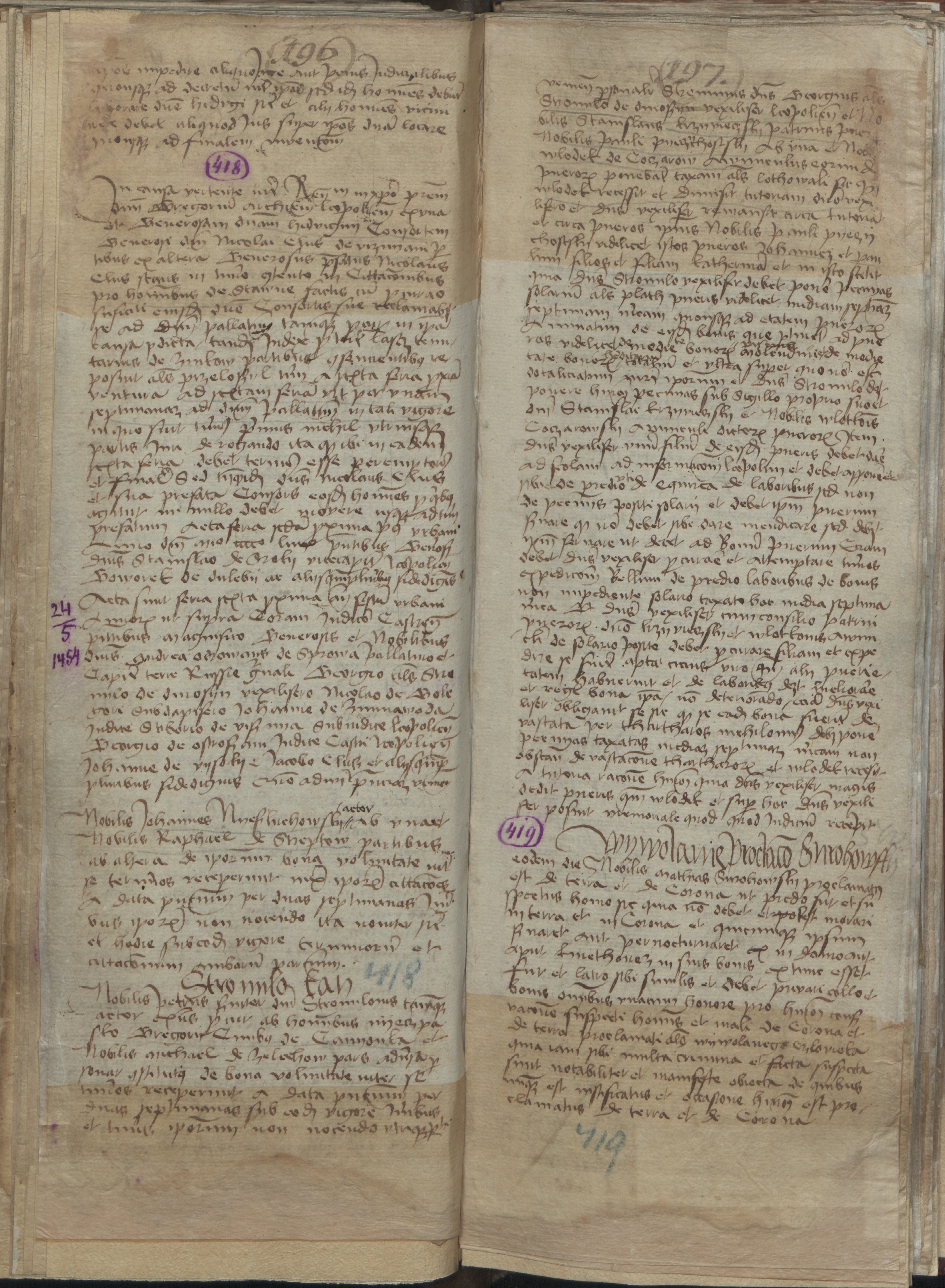 «Бережани – повітове місто. Миколай з Сеняви отримав у 1530 р. документ, виданий королем Сигізмундом І, на заснування міста на магдебурзькому праві. Герб міста – надвоє розділений щит, у верхній частині герб Шренява, у нижній – герб Брохвич ІІ». Цими двома скупими реченнями так описав Бережани у своїх замітках до історії міст історик Франц Ковалишин. Сьогодні ж місто в долині Золотої Липи має чимало розвідок і досліджень, наукових відкриттів і гіпотез. Бережани відомі щонайменше з 1375 року. Щоправда, останнім часом історики все більше схиляються до думки, що вперше Бережани згадані у 1445 р. у львівських гродських книгах. Натомість статус міста Бережани отримали значно пізніше – аж у 1530 р., коли власником міста став руський воєвода Миколай Сенявський.   За даними польського історика Кароля Шайнохи, Бережани були передані королем Владиславом ІІ Ягайлом у власність бояринові Васькові Тептуховичу, синові Васька Тептуха з Тисмениці. Однак докладніше він не посилається на джерела. Натомість Рафал Несторув уважає, що перша писемна згадка походить з 1445 року, коли тодішній власник Бережан Петро Цебровський свідчив у львівському суді під час слухання справи щодо злочину, вчиненого його селянами з сіл Бережани, Лісники та Лапшин. Цікавими є обставини цієї справи. 25 червня шляхетний Петро Внучко з Кутна (або з П’ятничан) поскаржився на селян згаданих сіл (адже Бережани тоді ще отримали міського статусу), а саме: на Якова, Тимофія, Олизара Чирника, Василя, Данила, Диниша, Максима, Василя сина Смолевича. Через два тижні, 8 липня того ж року, Петро знову позвав іншого Петра до суду, але чим завершилася справа, невідомо. У цьому ж році згаданий якийсь бережанський староста, щоправда, без імені. 1454 року, через дев’ять років, поселення опинилося в руках Ядвіги з Бережан, вдови Яна Бучацького, теребовельського старости. Вона 25 травня виступила відповідачкою у суперечці з львівським римо-католицьким архиєпископом Григорієм з Сяноку. Два роки пізніше вже Ядвіга позвала до відповіді шляхтича Яна Свинку з Поморян. 23 січня 1464 р. у галицьких земських актах згаданий шляхетний Якуб, офіціал з Бережан. 4 червня цього ж року Бережани знову фігурують як власність Ядвіги та її синів: Яна та Сигізмунда. 1469 року Бережани були королівщиною. В останній третині XV ст. поселення ще не раз зустрічатиметься то в львівських, то у галицьких гродських і земських книгах, як власність кількох шляхетських родин.